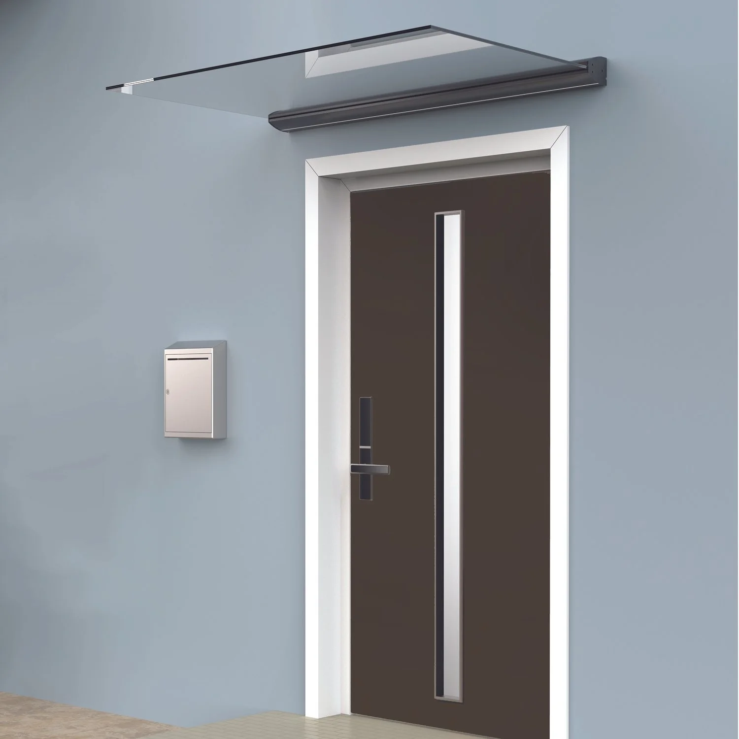 The 6063-T5 grade, engineered aluminum bracket uses our exclusive clamp system that securely holds the tempered glass in place. Finished in a satin charcoal gray that compliments any exterior.